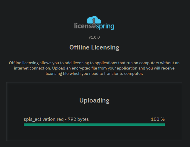 4. Once the uploading of the .req file is completed, an activation file is generated (ls_activation.lic) and it should be in your downloads folder.
