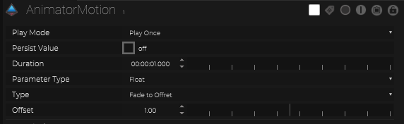 Once defined to a parameter the motion will be set/fade the value addionally until it reached the final defined offset and fades backwards until it reached the original state.