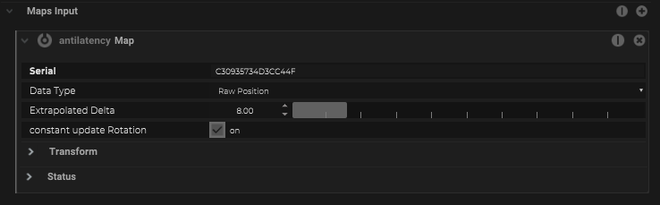 Instead of adding object from the antilatency IO, it´s also possible to add a Map input directly into an object from the object tree.