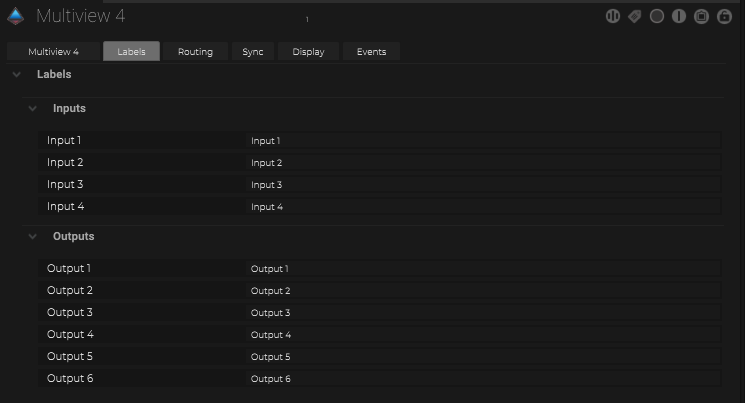 The option to view and modify the labels for both the inputs and outputs of the Multiview.