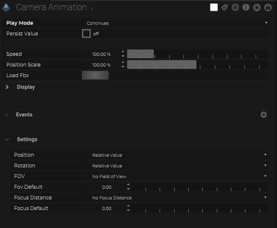 The Camera Animation Motion can effect all camera parameter additionally to the actual state by using a fbx camera animation.