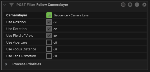 There is also a Camera specific filter, so that a virtual camera can be used to follow the camera timeline.