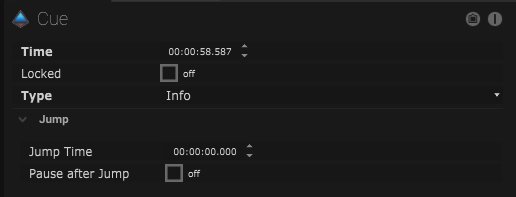 A cue can be added by double-clicking the area of the timeline where the cue needs to be. This will create a cue and this cue can be edited in the inspector.