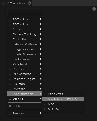 Add a Media Input within the IO-Connections and define these as Genlock Provider.