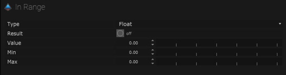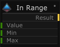 This node compares three input values. When the value is in between the minimum and maximum values the result will be output.