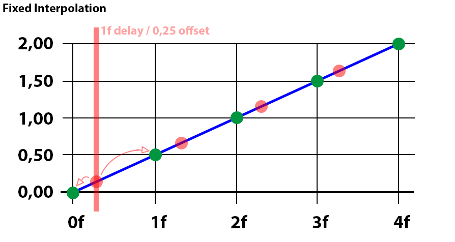 Fixed interpolation used the defined offset in percentage to interpolate the data between frames.