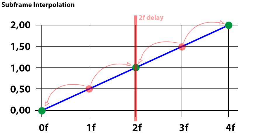 This makes it possible to define a specific moment between two frames to use this interpolated data.
