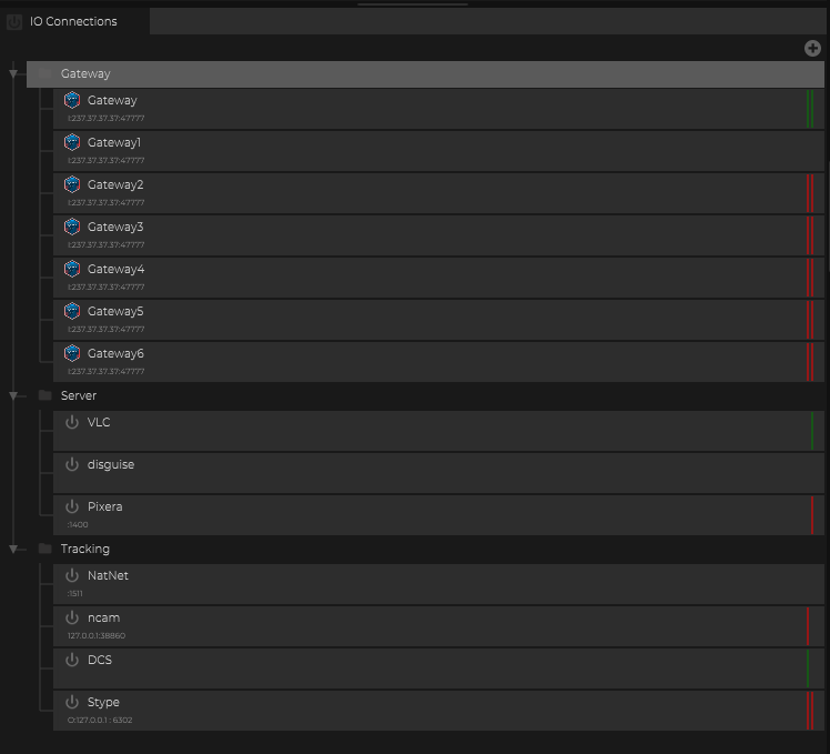 IO Connections can be added using the + button.
