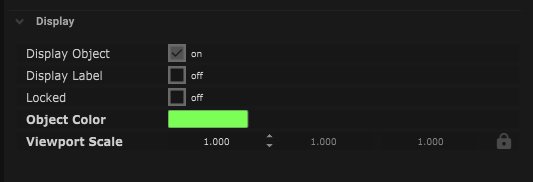 | Display Object | If ticked, the object will be visible in the scene. If un-ticked, the object will not be visible. |