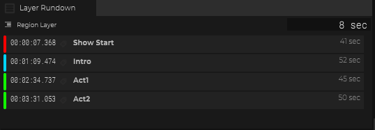 The Layer Rundown is a vertical rundown view from specific Layers from the Timeline.
