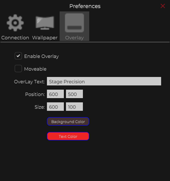 | Moveable | Allows the text overlay to be moveable with the mouse |