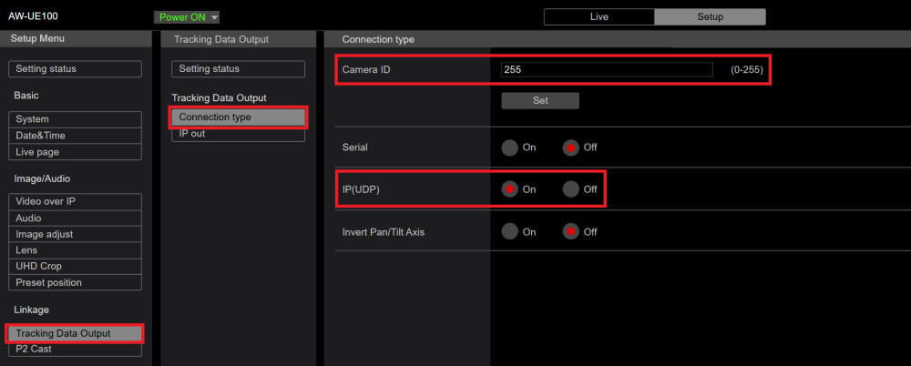 In order to fully control the PTZ camera, SP will need to get data from the camera via the FreeD protocol. Therefore it is important to make sure that the Panasonic camera is configured to send out FreeD data.