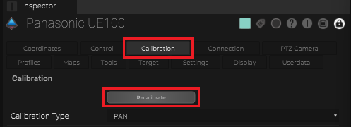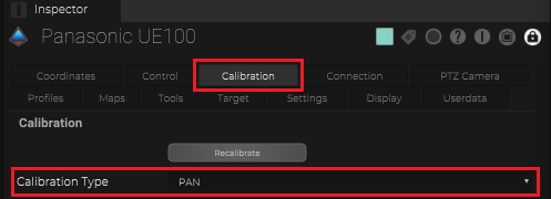 To do so, In the Inspector, under the Calibration tab, choose the Calibration Type to be PAN
