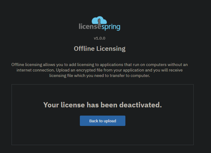 4. Once the uploading of the .req file is completed, an deactivation file is generated (ls_deactivation.lic) and it should be in your downloads folder.