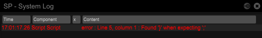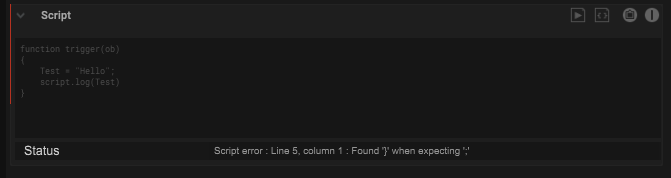 error : Line 5, column 1 : Found ‘}’ when expecting ‘;’