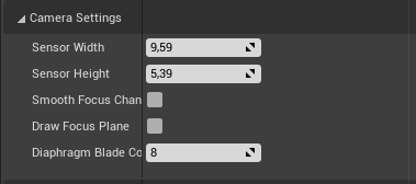 | Smooth Focus Change | enable this to use interpolation to smooth out changes in focus distance. When disabled, the focus changes will be instantaneous. |