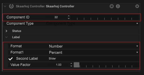 - The “Component ID” needs to defined to the needed ID from the Skaarhoj controller to link these correct.