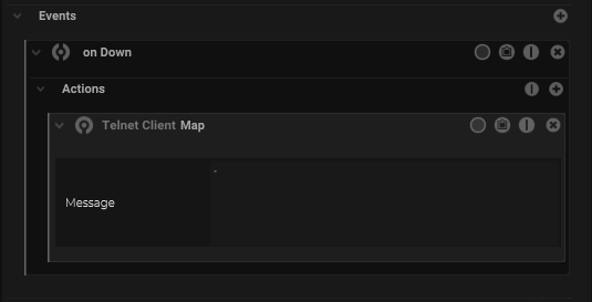 Within the event, create a new action -> “Telnet Message”.