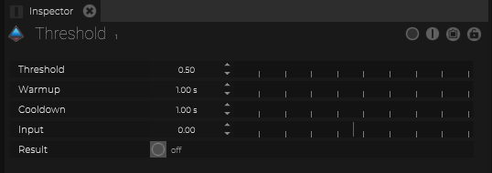 | Warmup | Define the duration how long the input value needs to be higher then the threshold value befor the reult will be true. |
